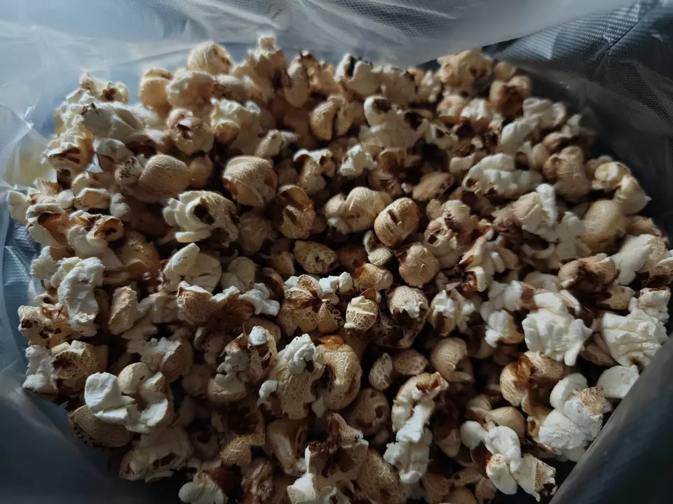 This is the popcorn I made. It was a success. But be careful not to put too much corn in at one time. Too much corn will get stuck in the pot.
